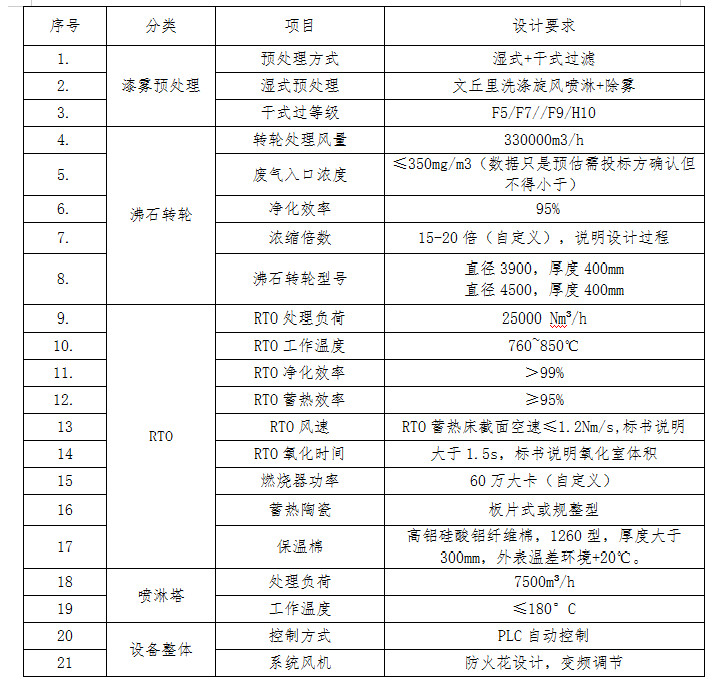 1、廢氣-2套濕式預(yù)處理系統(tǒng)+2套干式過濾系統(tǒng)+2套沸石轉(zhuǎn)輪+1套R(shí)TO系統(tǒng)+1套回風(fēng)系統(tǒng)。