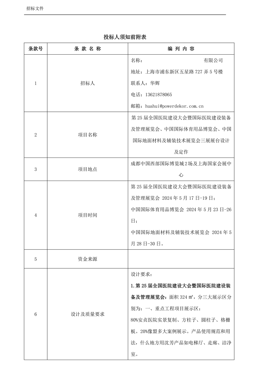 第25屆全國(guó)醫(yī)院建設(shè)大會(huì)暨國(guó)際醫(yī)院建設(shè)裝備及管理展覽會(huì)、中國(guó)國(guó)際體育用品博覽會(huì)、中國(guó)國(guó)際地面材料及輔裝技術(shù)展覽會(huì) 招標(biāo)文件
