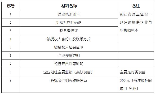 2、凡有意向參加投標者,請在上述期間內按下表提供報名資料,相關證明文件的原件如無法提供原件則提供復印件加蓋公司公章,投標人須將上述資料的掃描件發(fā)郵件至招標聯(lián)系人處進行報名。