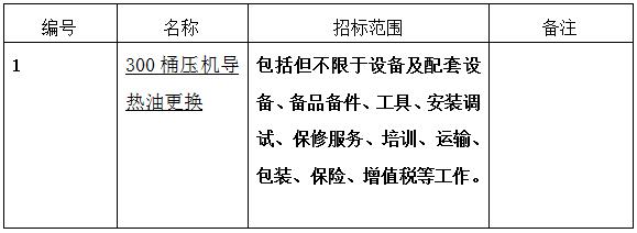 2、 工程規(guī)模:300桶壓機(jī)導(dǎo)熱油更換