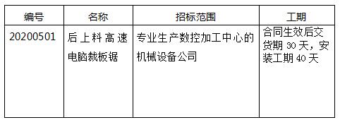 合雅木門后上料高速電腦裁板鋸項(xiàng)目招標(biāo)公告