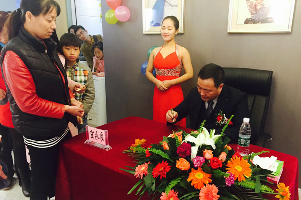 揭幕式之后,宦永良總監(jiān)在體驗館內進行現場簽售活動,活動當天簽售總計85單,預計活動全款將超過110萬元。兩位85后合伙人更為簽單客戶準備了多重豐厚大禮:全年保價、砸金蛋、抽獎等等,現場客戶可謂滿載而歸。