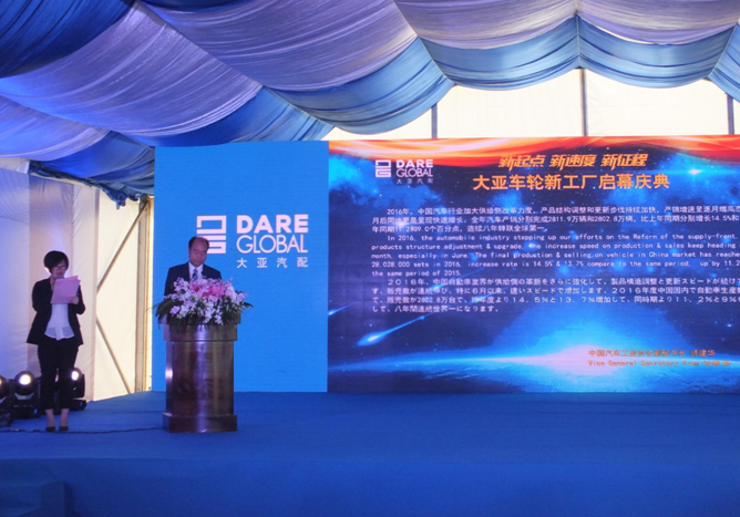 中國汽車工業(yè)協(xié)助副秘書長對大亞車輪新工廠啟幕表示祝賀,他堅信在新的工作環(huán)境中,在行業(yè)快速發(fā)展的大背景下,在國家經(jīng)濟(jì)“脫虛向?qū)?rdquo;的主導(dǎo)下,大亞車輪制造有限公司一定可以實現(xiàn)更大的發(fā)展,取得更加輝煌的成就。
