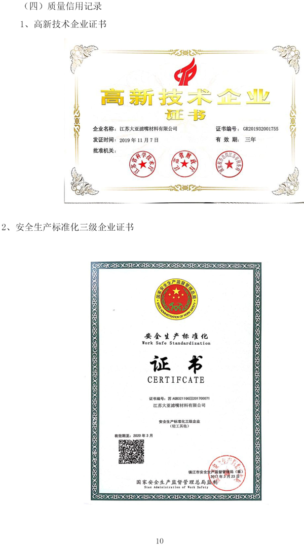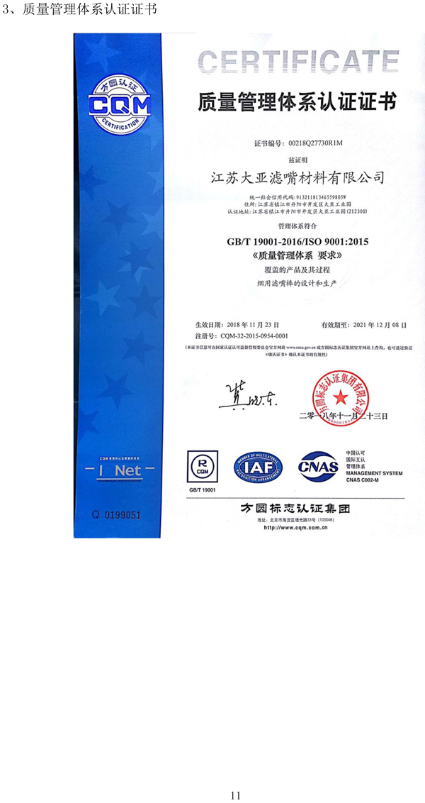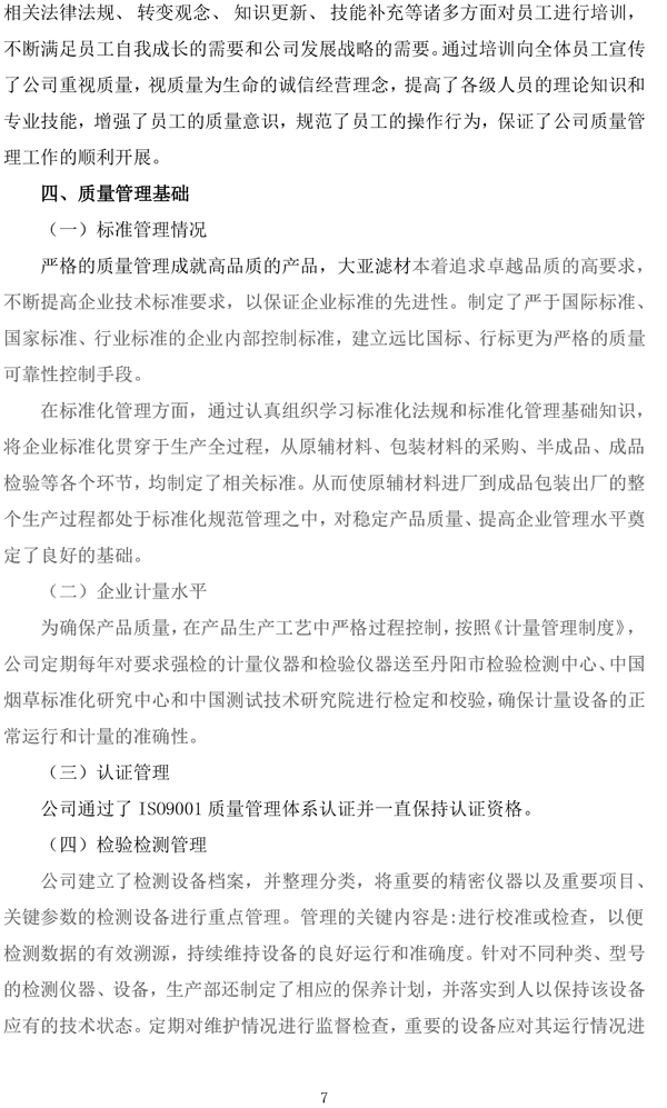 企業(yè)質(zhì)量信用報告——江蘇大亞濾嘴材料有限公司