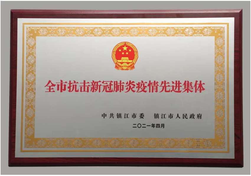 大亞集團(tuán)作為先進(jìn)集體獲獎(jiǎng)?wù)叽砩吓_(tái)領(lǐng)獎(jiǎng),鎮(zhèn)江市委書(shū)記馬明龍授予大亞集團(tuán)“全市抗擊新冠肺炎疫情先進(jìn)集體”榮譽(yù)獎(jiǎng)牌。