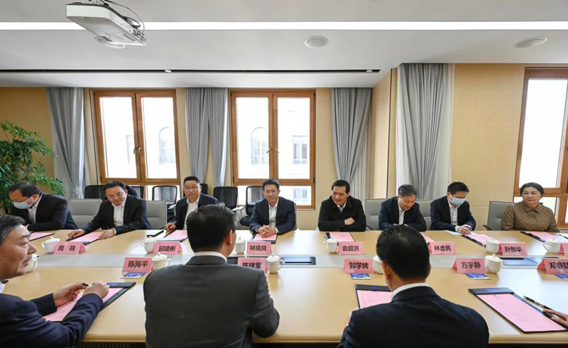 2023年2月7日下午,福建省副省長、南平市委書記林瑞良,市政府市長袁超洪一行蒞臨大亞圣象上海總部座談交流。大亞圣象家居股份有限公司董事長、圣象集團董事長陳建軍,大亞產(chǎn)業(yè)基金管理有限公司總裁陳海平,圣象華宇集團副董事長郭學(xué)婢等領(lǐng)導(dǎo)熱情接待。