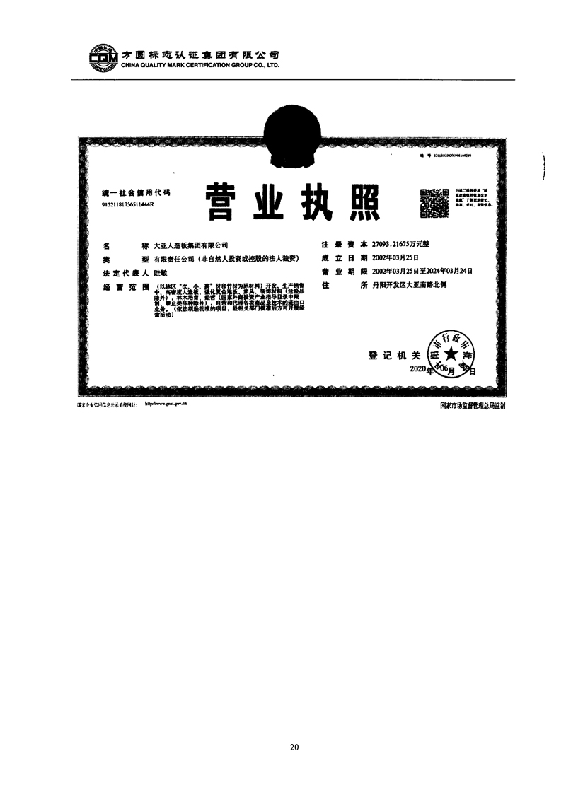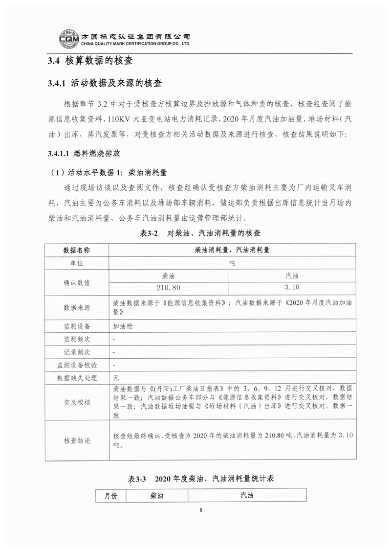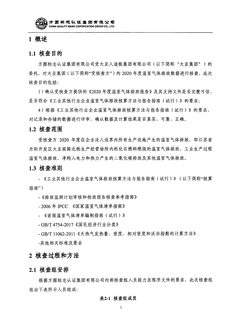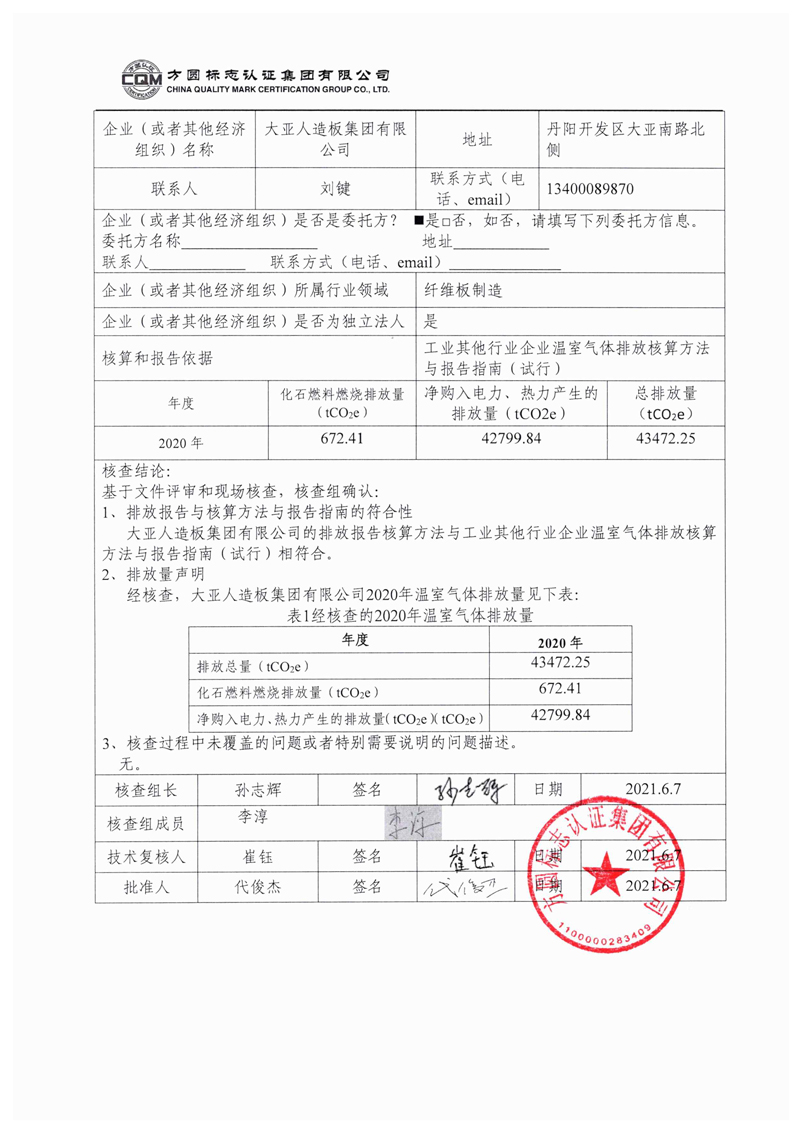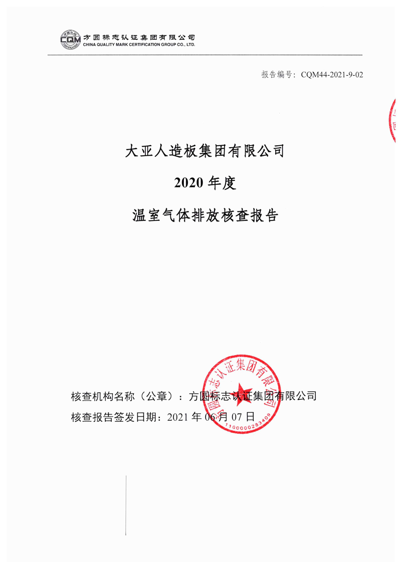 大亞人造板集團(tuán)有限公司2020年度溫室氣體排放核查報告自主公示