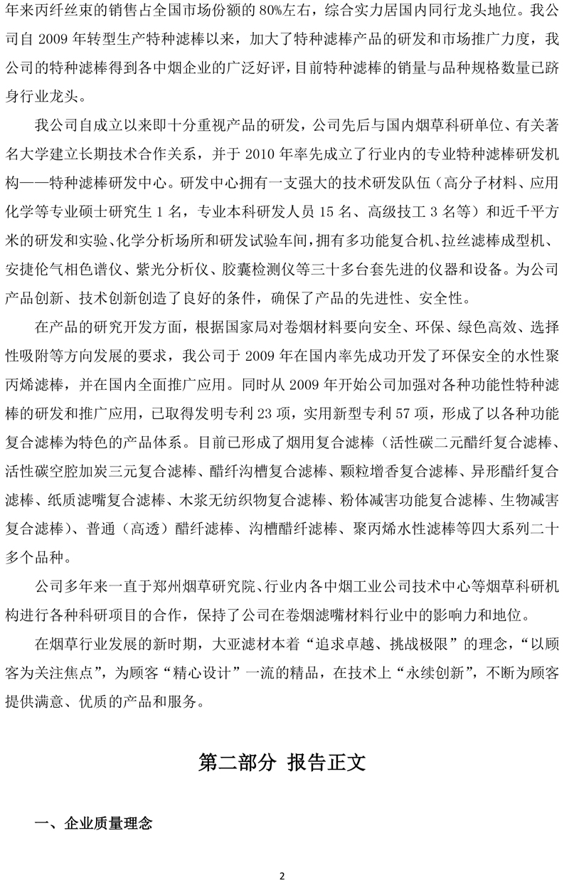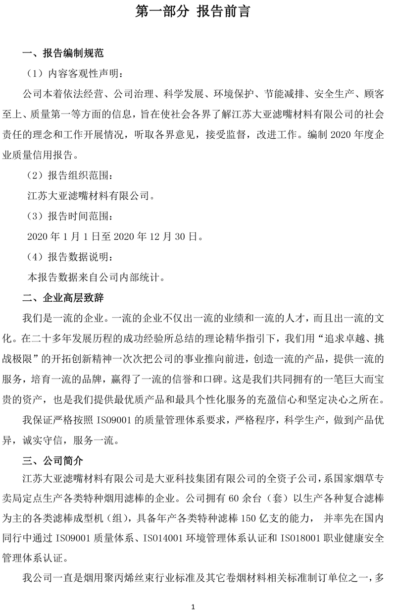 江蘇大亞濾嘴材料有限公司企業(yè)質(zhì)量信用報(bào)告